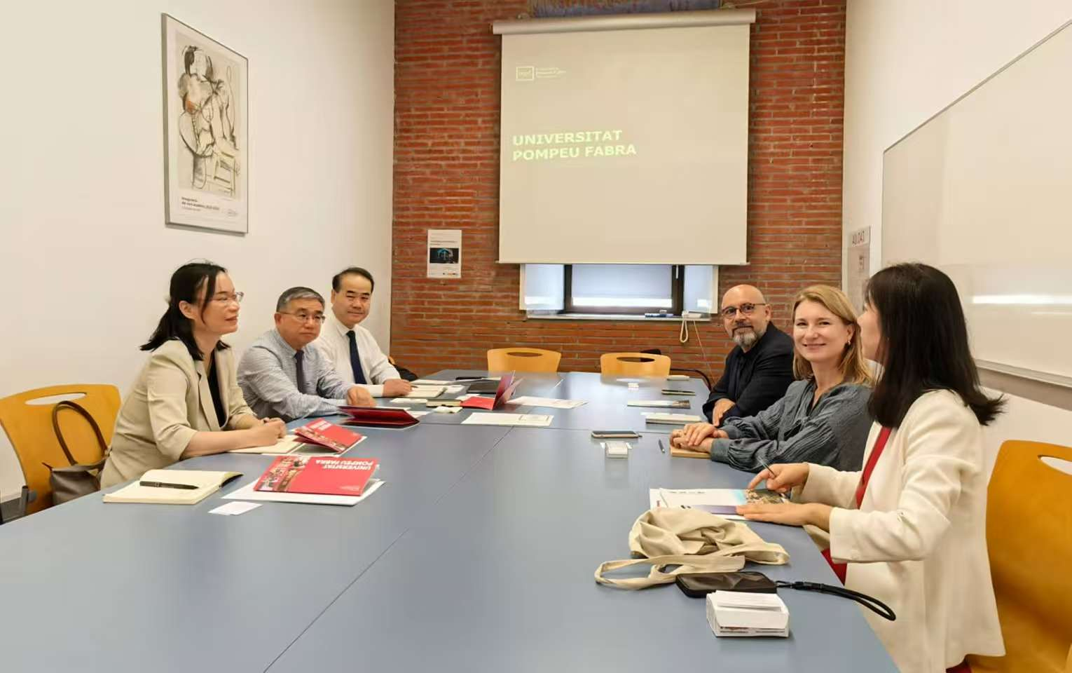 访问西班牙庞培法布拉大学期间,代表团与该校副校长约瑟普・伊瓦涅斯等人进行了工作会谈。双方围绕西班牙语、经济学和商科领域合作开展了沟通交流,一致同意在西班牙语学生合作培养基础上,以英语授课课程为突破口,推动两校在经济及商科领域的学生交流,为多学科合作积累经验、奠定基础。