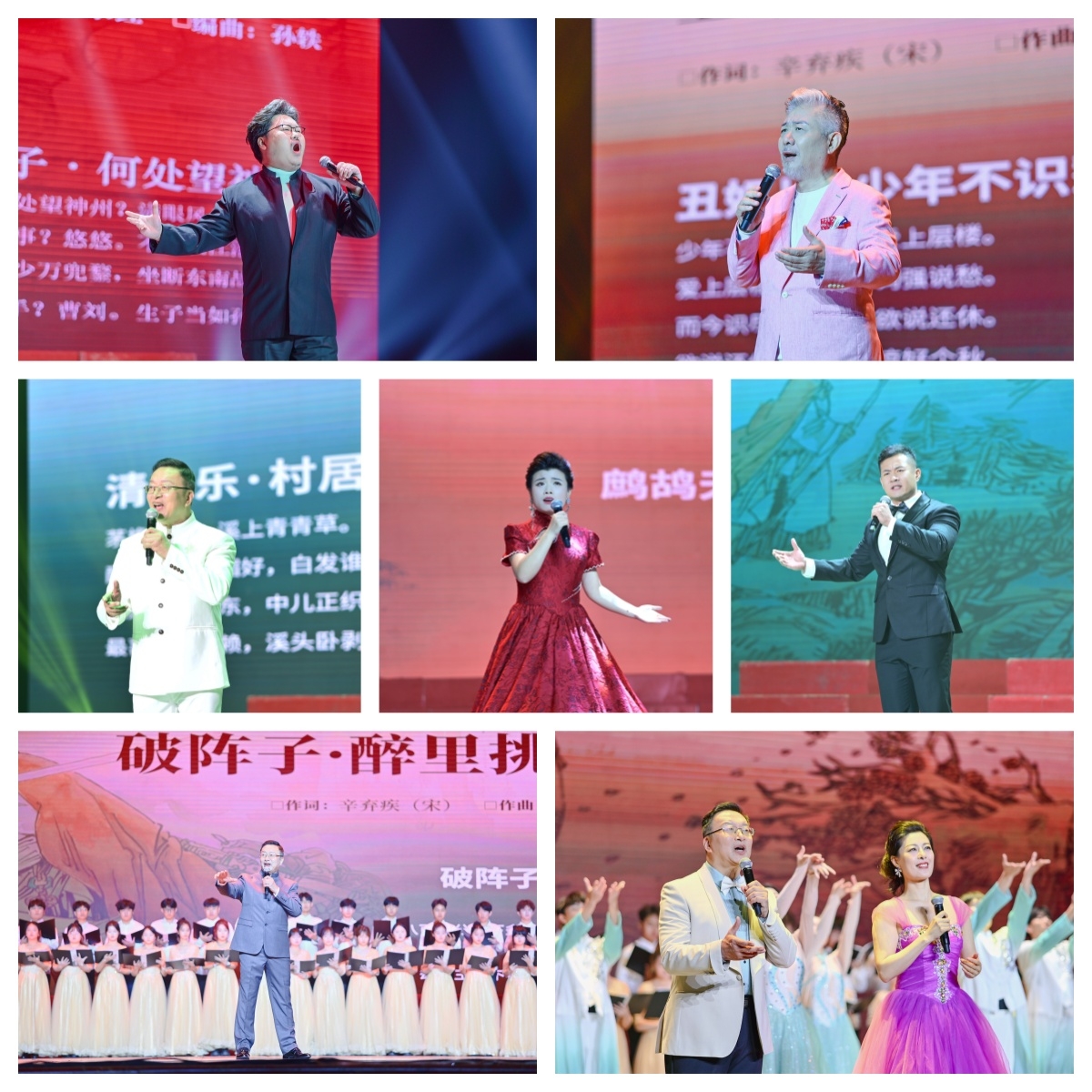 本次演唱会以“传承经典、创新表达”为核心,山东大学原党委副书记、博士生导师方宏建领衔,携手青岛大学客座教授、著名歌唱家雷岩、王立夫,以及青岛大学、青岛市歌舞剧院优秀歌唱演员,倾情演绎《破阵子·醉里挑灯看剑》《丑奴儿·少年不识愁滋味》等12首辛弃疾经典词作改编歌曲,还特别呈现原创作品《千古稼轩》,用旋律唤醒千年词魂。