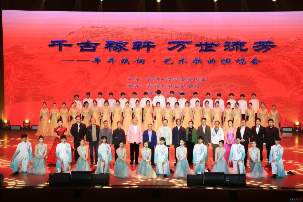 新闻网讯 秋意深浓,文脉永续。11月6日晚,由学校党委宣传部主办,团委和艺术学院承办的“千古稼轩 万世流芳”——辛弃疾词·艺术歌曲演唱会在青岛大学剧院隆重开演。校党委书记胡金焱,校党委常委、副校长麻国升,山东大学济南校友会、青岛校友会40余名嘉宾以及青岛大学600余名师生现场观看演出,共同感受古词新唱的独特魅力。