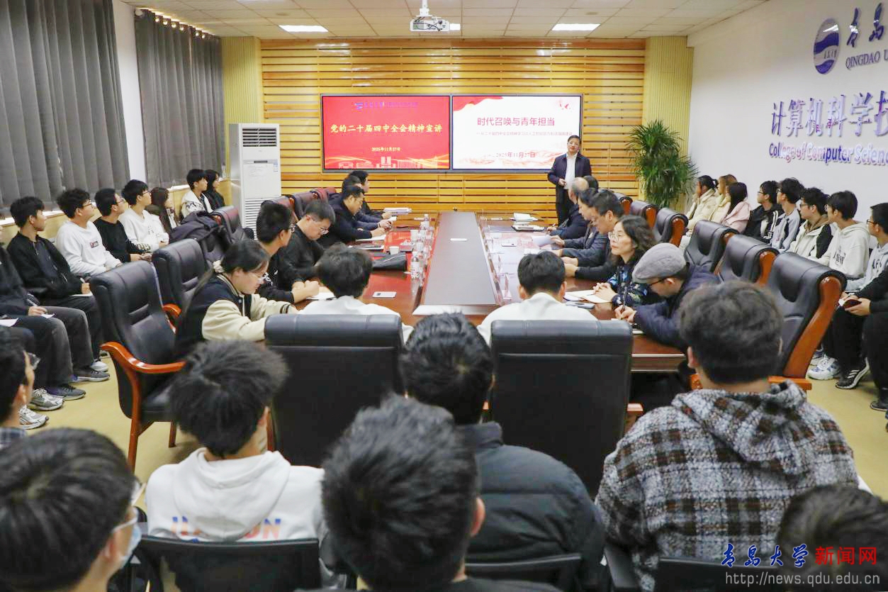 新闻网讯 11月27日下午,青岛大学学习贯彻党的二十届四中全会精神宣讲团成员、校长魏志强在计算机科学技术学院为师生代表宣讲党的二十届四中全会精神,并聚焦“人工智能赋能先进制造业”的前沿路径讲授思政课。