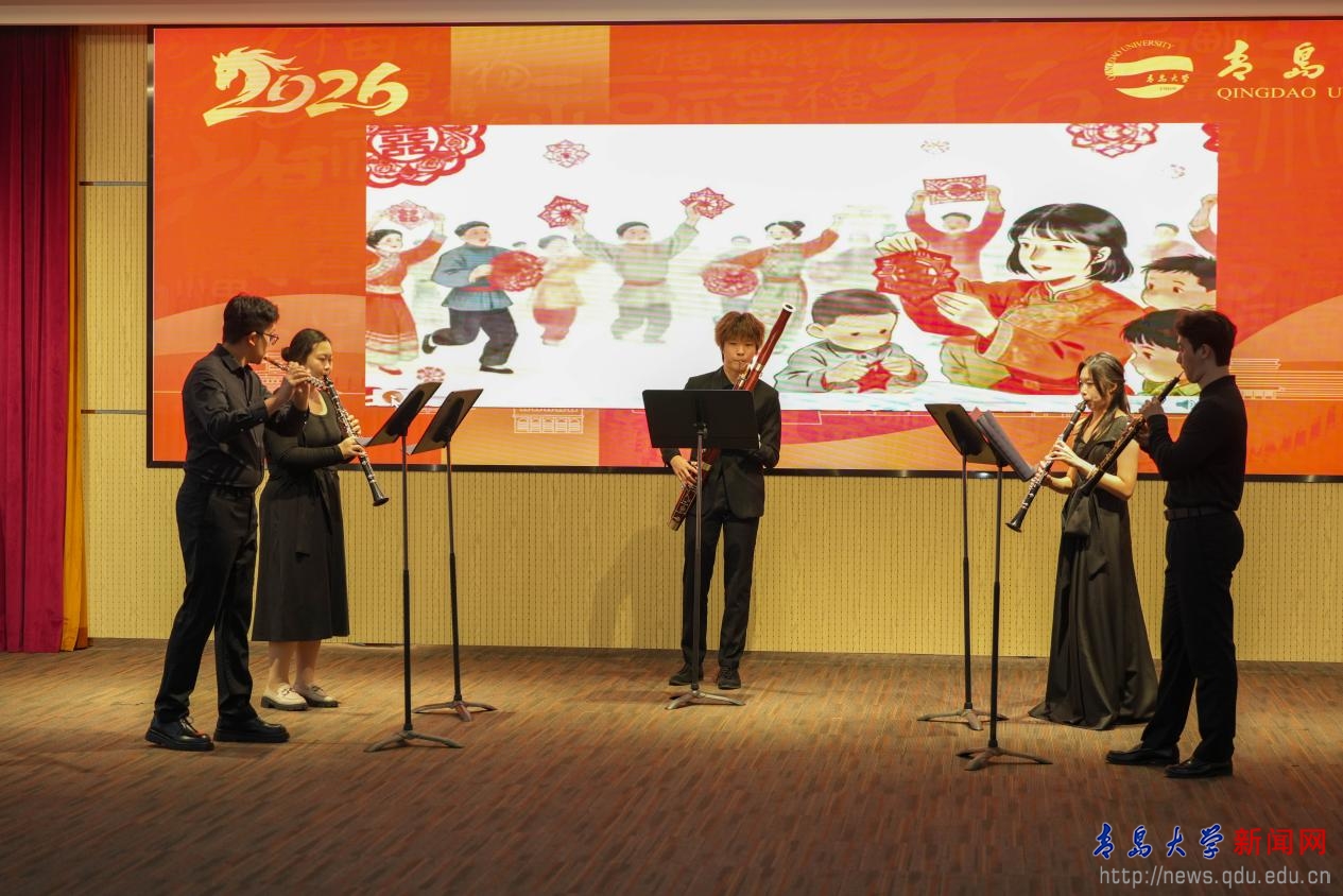 与会人员一同观看了学校2025年外籍教师工作回顾,欣赏了外籍教师和艺术学院同学们的精彩文艺表演。伴随着自上世纪80年代至今的历届来校工作的外籍专家剪影回顾以及歌曲《友谊地久天长》的深情演绎,联谊会圆满落下帷幕。外籍教师们表示,此次联谊会让他们充分感受到新年节日氛围与喜悦,感受到了学校领导的重视和关心。作为学校成员,他们深感自豪。新的一年,外籍教师们将持续投身教学科研工作,为学校贡献力量,与学校共同发展,谱写交流合作新篇章。