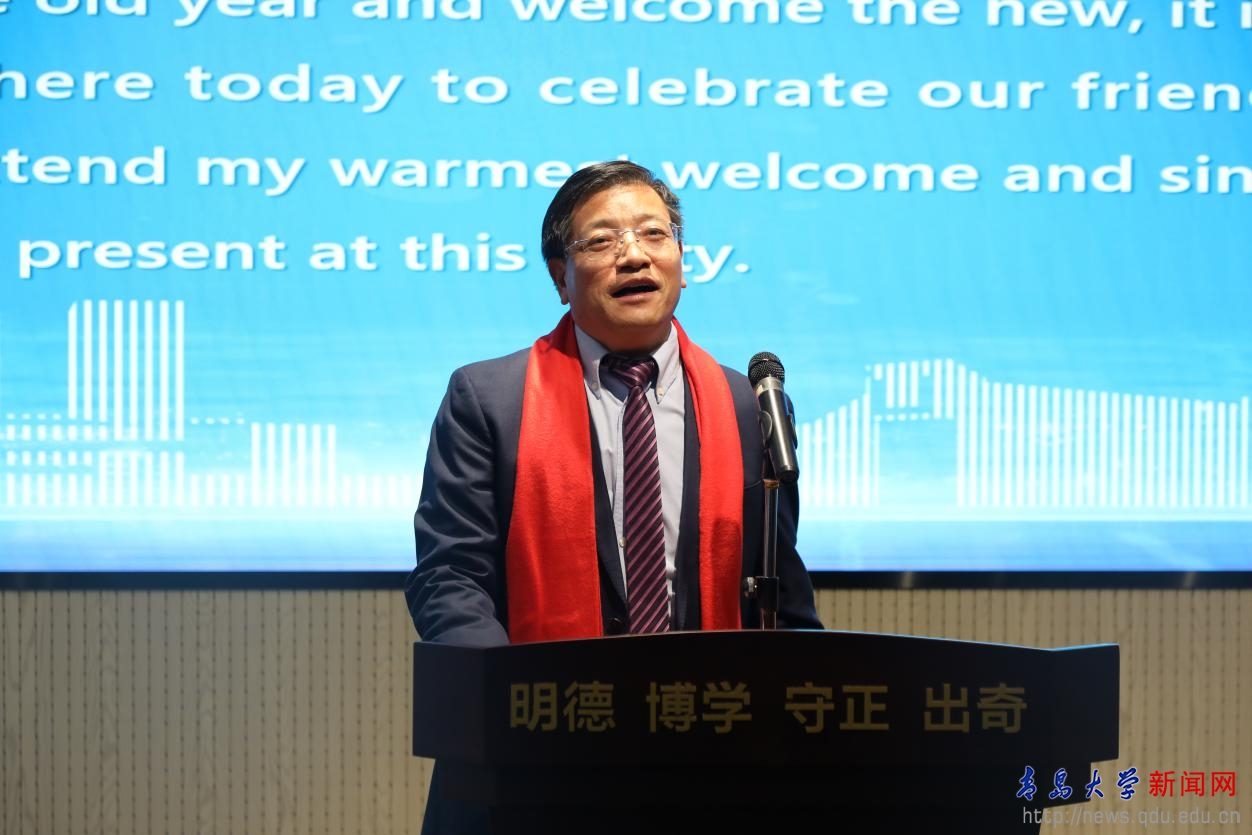 魏志强代表学校向出席联谊会的外籍教师和来宾表示热烈欢迎。他回顾了过去一年学校在国际化办学领域所取得的成绩。他指出,2025年学校积极拓展国际朋友圈,先后派出校级代表团访问了10个国家30余所高校,接待了36个国外校级代表团,与10所高校新建友好关系,目前已与39个国家的242所海外高校建立了友好合作关系,学校国际声誉和影响力不断提升。持续开展赴英国剑桥大学和日本东京大学等世界名校访学项目,新建赴新加坡南洋理工大学研究生访学项目,获批新增国家留学基金委资助项目1项,40余名同学获批国家留学基金委资助出国留学。外籍教师工作再结硕果,2025年有两位外国专家分别荣获中国政府友谊奖和齐鲁友谊奖。他表示,学校国际化办学工作所取得成绩,离不开青岛市相关职能部门的关心与支持。展望2026年,他希望包括外籍教师在内全体青大人继续并肩携手,全面构建学校国际化办学大格局,共同开创青岛大学美好未来。