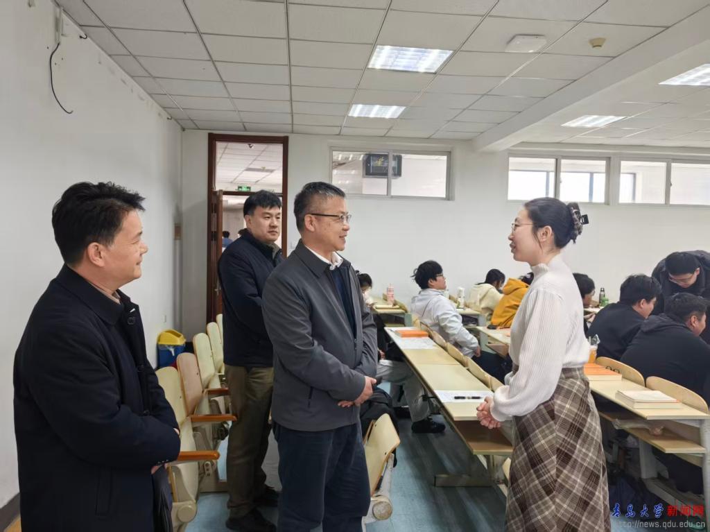 其他校领导分赴马克思主义学院、历史学院、化学化工学院、政治与公共管理学院、物理科学学院、计算机科学技术学院、青岛医学院、基础医学院、环境与地理科学学院等教学单位,随机听取了不同学科的课堂教学,深入了解新学期各专业的教学情况。课后,校领导与任课教师亲切交谈,就课程内容设计、讲授逻辑安排、课堂互动效果等方面进行探讨,并向同学们询问对课程的理解程度、学习中的难点困惑以及开学初的适应情况,认真听取师生对教学管理和学习体验的意见建议。