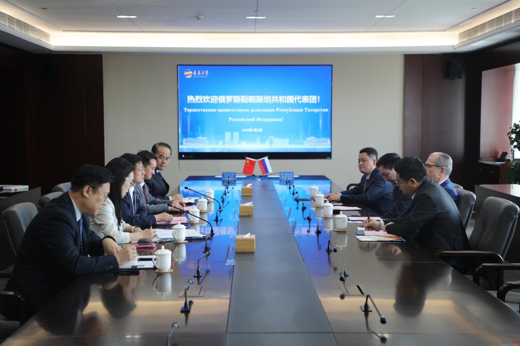 会上,魏志强对代表团一行来访表示热烈欢迎。他指出,青岛大学学科门类齐全,在人工智能、电子信息、纺织材料、新能源、医疗器械、智能制造等领域具有显著优势。作为上合经贸学院的实施主体,学校积极服务国家对外开放战略,持续推进与上合组织国家高校的交流合作,致力于打造高水平国际教育合作平台。青岛大学将以2026—2027年“中俄教育年”为契机,依托山东省与鞑靼斯坦共和国良好的地方合作基础,积极参与“中俄先进技术大学”建设,进一步拓展与喀山联邦大学等俄罗斯鞑靼斯坦共和国高校在人才培养、科学研究、成果转化、产教融合等领域的务实合作,推动中俄教育合作走深走实。