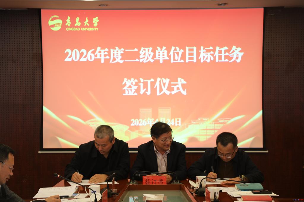 新闻网讯 4月24日,学校在办公楼第一会议室举行2026年度二级单位目标任务签订仪式。校党委书记胡金焱、校长魏志强出席会议并讲话,校领导李荣贵、徐大连、麻国升出席会议,校党委常委、副校长刘恩贤主持会议。