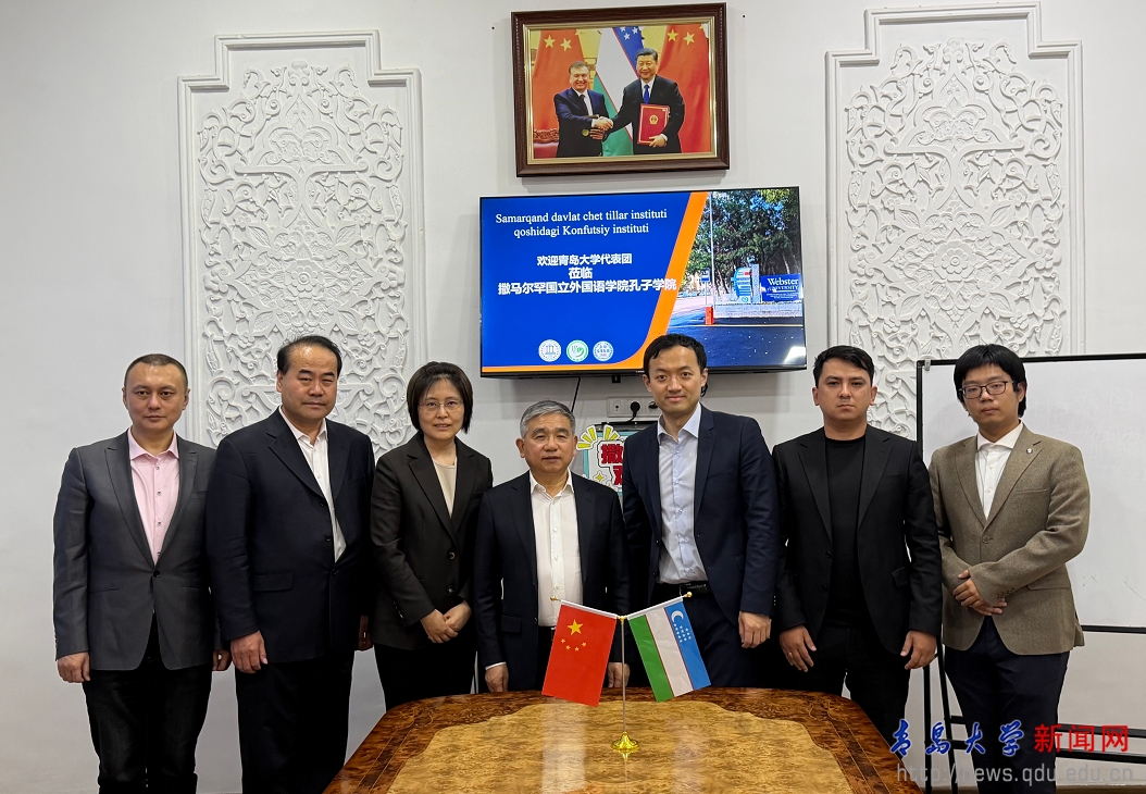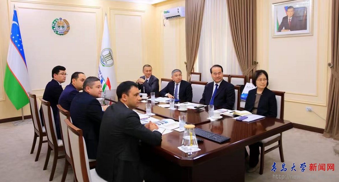 4月20日下午,代表团访问了撒马尔罕国立外国语大学孔子学院。孔子学院中方院长项伟对代表团来访表示热烈欢迎。双方介绍了各自情况,商定在推动学生到青岛大学留学、国际中文志愿者推荐、文化交流活动国际中文教学等方面开展合作。