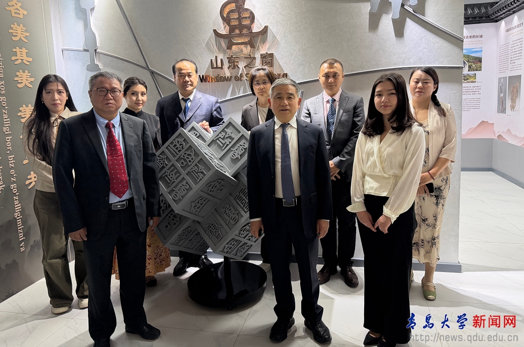 代表团随后实地察看了“山东之窗”建设情况,与“丝绸之路”国际旅游与文化遗产大学副校长邹统钎等进行了交流座谈,就如何合作推动“山东之窗”建设以及在教育、文化、经贸等领域发挥更大作用进行了探讨。