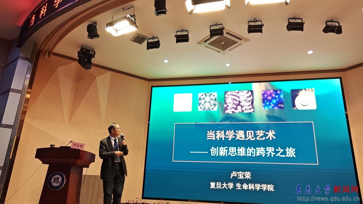 新闻网讯 11月7日晚,复旦大学生命科学学院特聘教授、博士生导师、希德书院院长卢宝荣应邀做客我校“浮山讲堂”第98期,在教育科学学院报告厅为三百余名师生带来题为《当科学遇见艺术:创新思维的跨界之旅》的精彩讲座。本期讲座由我校国家大学生文化素质教育基地主办,浮山书院承办。