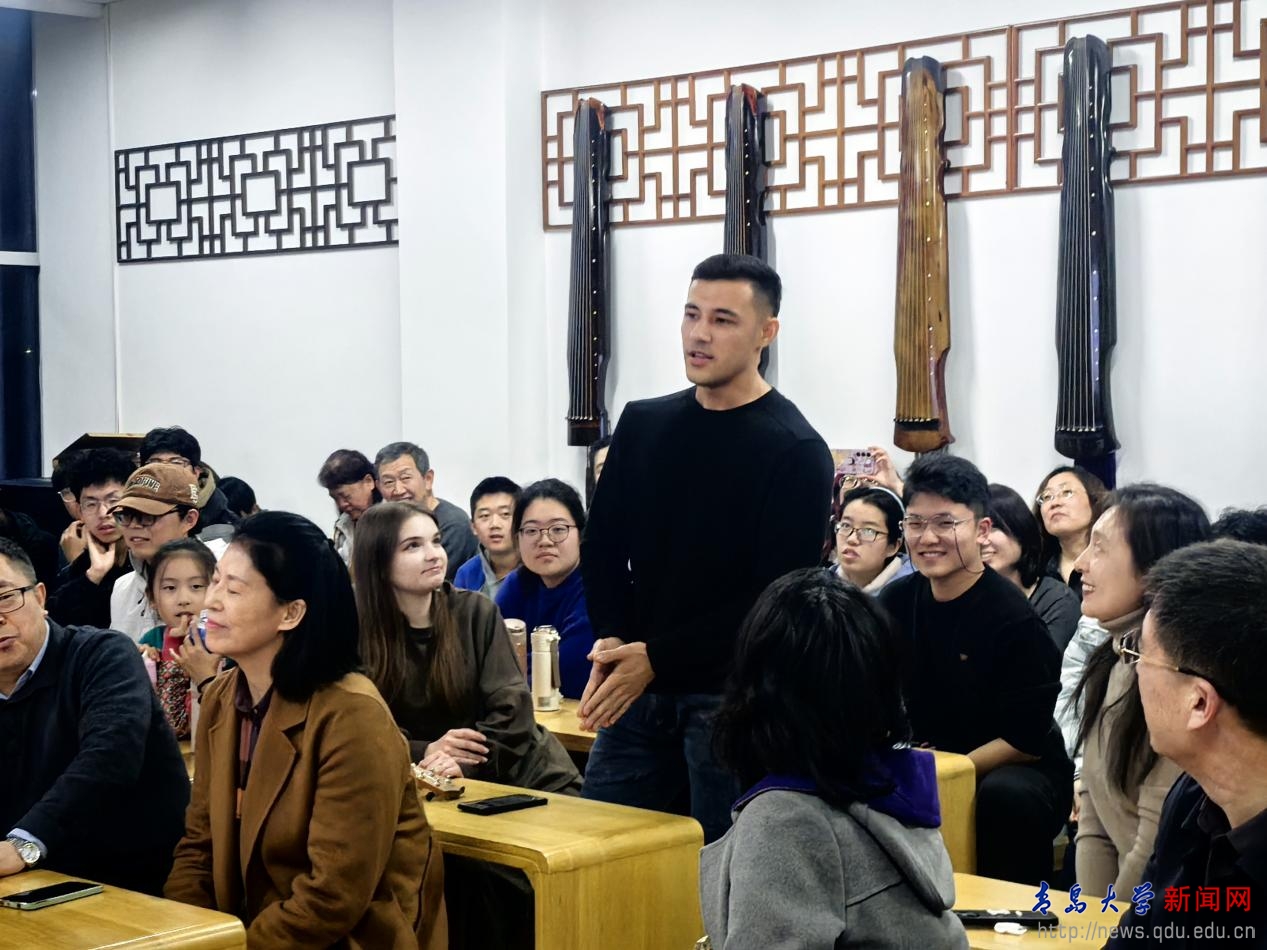 新闻网讯 12月16日晚,受我校国家大学生文化素质教育基地邀请,著名二胡演奏家邓建栋教授做客浮山讲堂第99期,在浮山书院大音堂为近百名中外师生呈现了一场融合历史讲解、作品解析与现场演奏的国乐文化盛宴。本次讲座由浮山书院承办,是我校艺术学院王娟娟老师主讲的美育课程《中国民族器乐艺术》的特色教学活动之一。青岛市人大常委会专职委员、一级巡视员王为达,我校原党委书记夏临华,以及教务处、离退休工作处、艺术学院、国际教育学院等部门的相关人员出席活动。