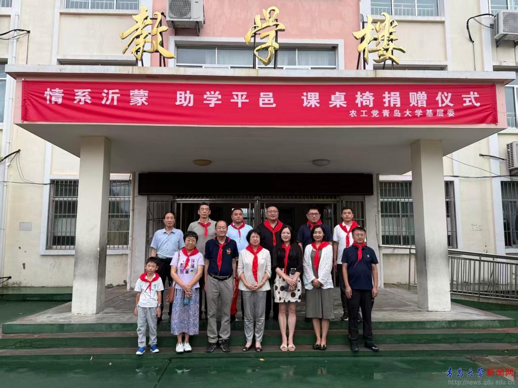 新闻网讯 9月16日,农工党青岛大学基层委员会在临沂市平邑县贺庄完小举行“情系沂蒙 助学平邑”课桌椅捐赠仪式,农工党青岛市委会秘书长赫旭、青岛大学基层委主委徐文华等参加活动。
