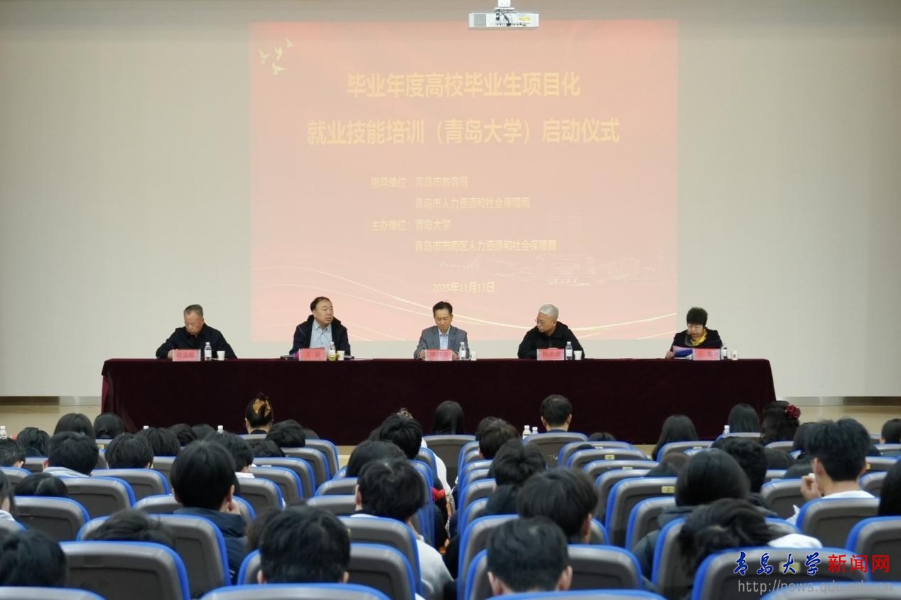 麻国升对市人社局、市教育局和市南区人社局长期以来对学校事业发展特别是毕业生就业工作的大力支持表示衷心感谢。他表示,青岛大学作为青岛市重要的高素质人才培养基地,始终坚持以服务学生成长、服务地方发展为己任。此次项目化就业技能培训,是青岛大学贯彻落实国家职业技能提升行动、推动毕业生更充分更高质量就业的重要举措。学校将严格规范组织管理,优化课程设置,强化师资配备,健全档案机制,确保培训质量,切实提升毕业生的就业竞争力。