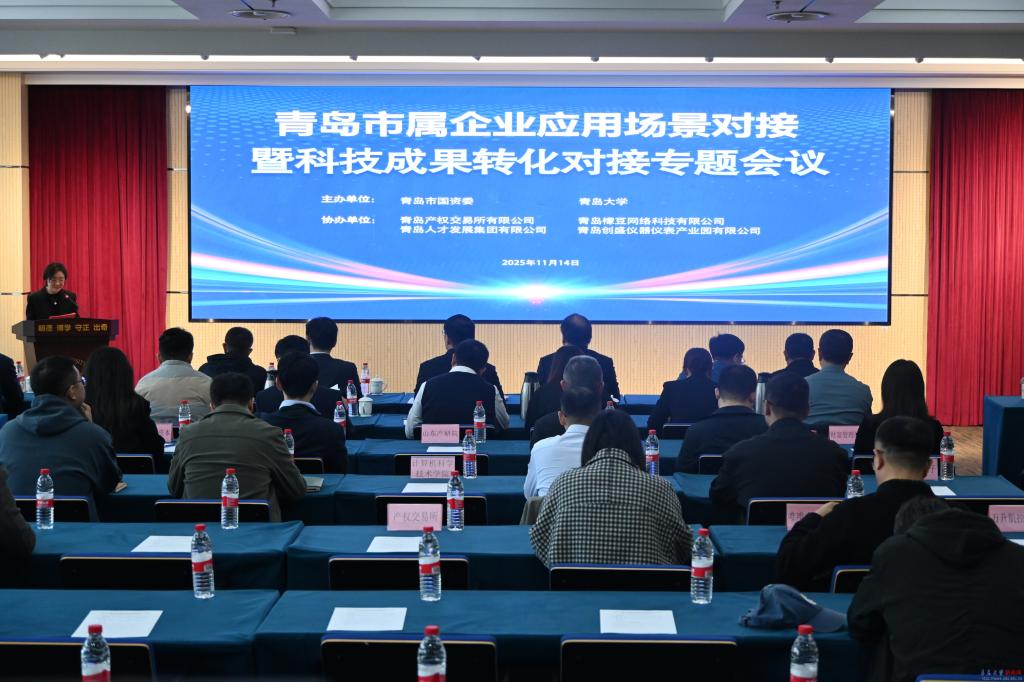 新闻网讯 11月14日下午,由青岛市国资委与青岛大学联合举办的“市属企业应用场景对接暨科技成果转化对接专题会议”在我校会议中心成功举行。市国资委副主任匡明,我校副校长李荣贵,青岛国投公司、地铁集团、国信集团、城投集团等市属企业负责人、驻青高校专家、科技服务及投资机构代表、各学院教师代表等140余人参会,共商校企合作、共促成果转化。