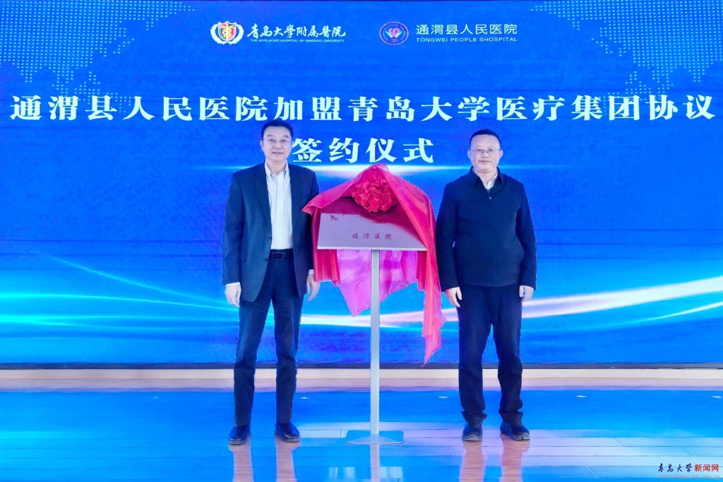 当天,“青岛大学医疗集团通渭医院”与“青大附院远程医疗会诊中心通渭县人民医院分中心”两块熠熠生辉的牌匾挂在了通渭县人民医院。这不仅仅是简单的仪式,更意味着源自青医的优质医疗资源正跨越山海,在此深深“扎根”。