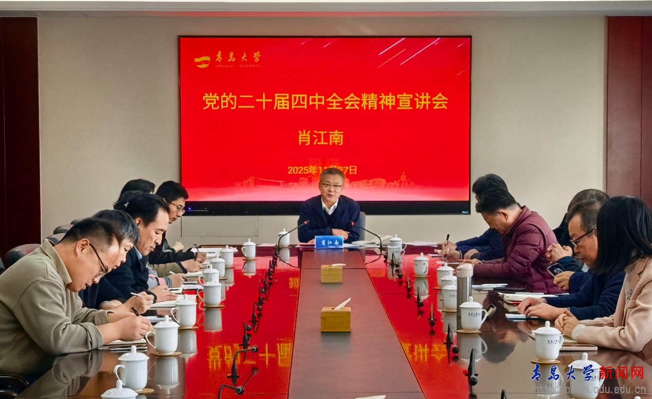 新闻网讯 11月27日下午,青岛大学学习贯彻党的二十届四中全会精神宣讲团成员、校党委副书记肖江南在会议中心302会议室为分管的历史学院和数学与统计学院代表宣讲党的二十届四中全会精神。