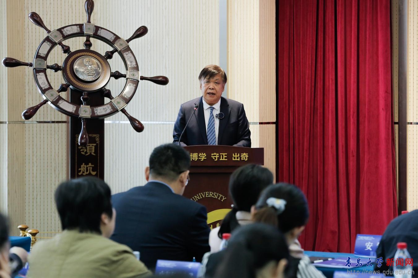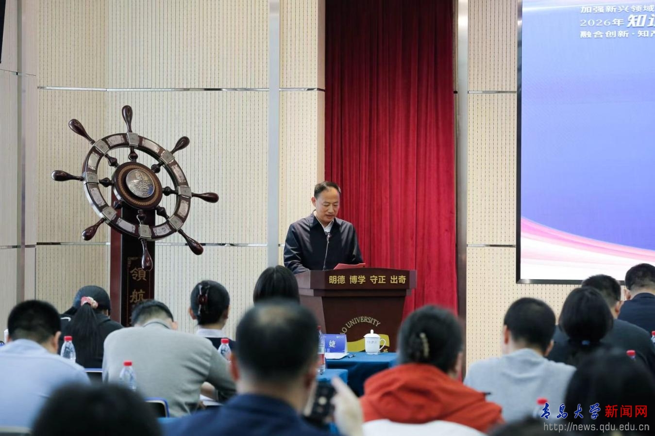 新闻网讯 4月23日下午,2026年知识产权宣传周山东高校专题活动在我校举行。活动由山东省教育厅(省委教育工委)、山东省市场监督管理局(山东省知识产权局)指导,青岛大学、青岛市市场监督管理局(知识产权局)主办,以“融合创新·知产提效——从存量激活到增量创造”为主题,着力推动教育科技人才一体发展,更好地服务新质生产力培育和现代化强省建设。