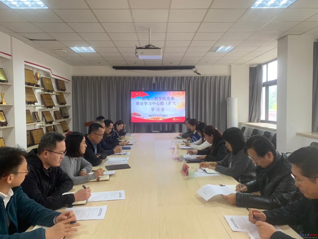 新闻网讯 10月30日下午,机电工程学院党委召开理论学习中心组(扩大)学习,专题学习党的二十届四中全会精神。会议由学院党委书记李明伦主持,学院党委理论学习中心组成员、各党支部书记、各系主任参加会议。学校党委理论学习中心组学习列席旁听工作第六组郝晓丽、官慎蕙、王聪儿列席学习会。