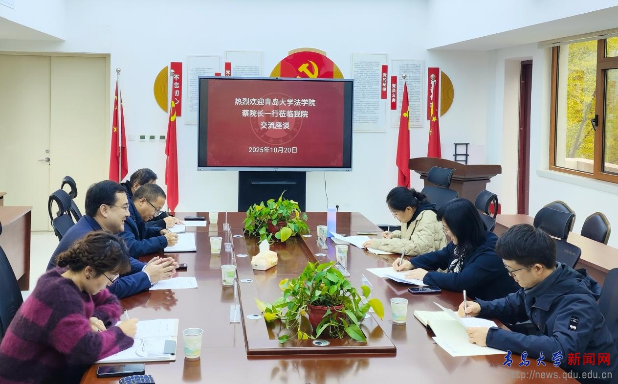 在山东师范大学法学院的交流座谈会上,山师法学院副书记梁肖、副院长吕芳详细介绍了其学院在学科体系建设、师资队伍打造、科学研究与社会服务等方面的探索与成效,分享了在凝练学科方向、强化特色优势以及为申报法学博士点所做的基础积累与经验做法。青大法学院与会人员则重点介绍了本院在学科布局、科研组织化推进以及高层次人才引育方面的实践路径。双方一致认为,面对新形势新任务,兄弟院校之间应加强互学互鉴,共同应对学科发展与学位点建设中的挑战,尤其在打破学科壁垒、促进资源共享、协同申报高级别科研项目与奖励等方面存在广阔的合作空间。