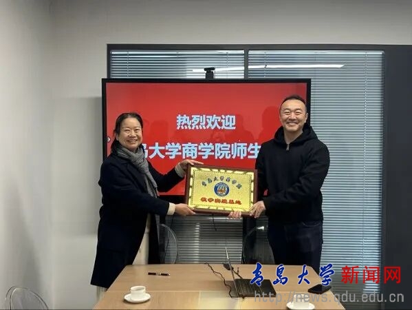 新闻网讯 12月3日,商学院院长助理马骋、陇南师范学院电子商务学院院长杜理明(挂职)、市场学系主任袁颖及教师、学生代表一行赴一直向上(青岛)营销策划有限公司开展访企拓岗活动。双方在活动中进行了深入座谈,并共同签署了教学实践基地合作协议,举行了实习基地授牌仪式,为商学院学子搭建起优质的实践成长平台。