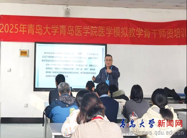 李冰在致辞中表示,青岛医学院各附属医院和教学医院的师资力量雄厚,教学经验丰富,为医学人才培养工作做出了重要贡献。希望以此次培训为契机,进一步推进医学模拟教学的系统化、规范化、标准化与同质化,切实增强骨干师资在教学、考评、管理和创新等方面的综合能力,逐步完善各医院师资培训体系,打造一支符合新时代临床医学人才培养需求的高水平师资队伍。