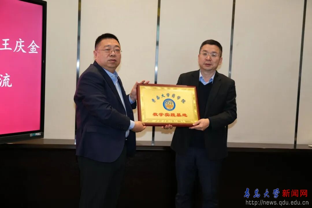 会上,双方签署了《合作建设本科教学实习基地协议书》,并举行“青岛大学商学院教学实践基地”授牌仪式,标志着校企合作进入常态化、实质化阶段。同时,王庆金书记向杨国梁董事长颁发MBA行业导师聘书,未来企业专家将深度参与课堂教学、案例开发与实践指导,推动商科教育更加贴近行业实际。