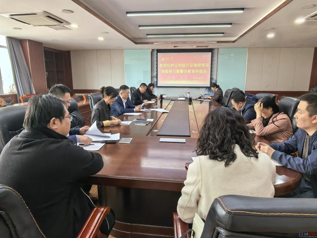 新闻网讯 4月2日下午,商学院在310会议室召开树立和践行正确政绩观专题学习暨警示教育专题会议。学院党委委员、班子成员、各支部书记参加,会议由学院党委书记王庆金主持。