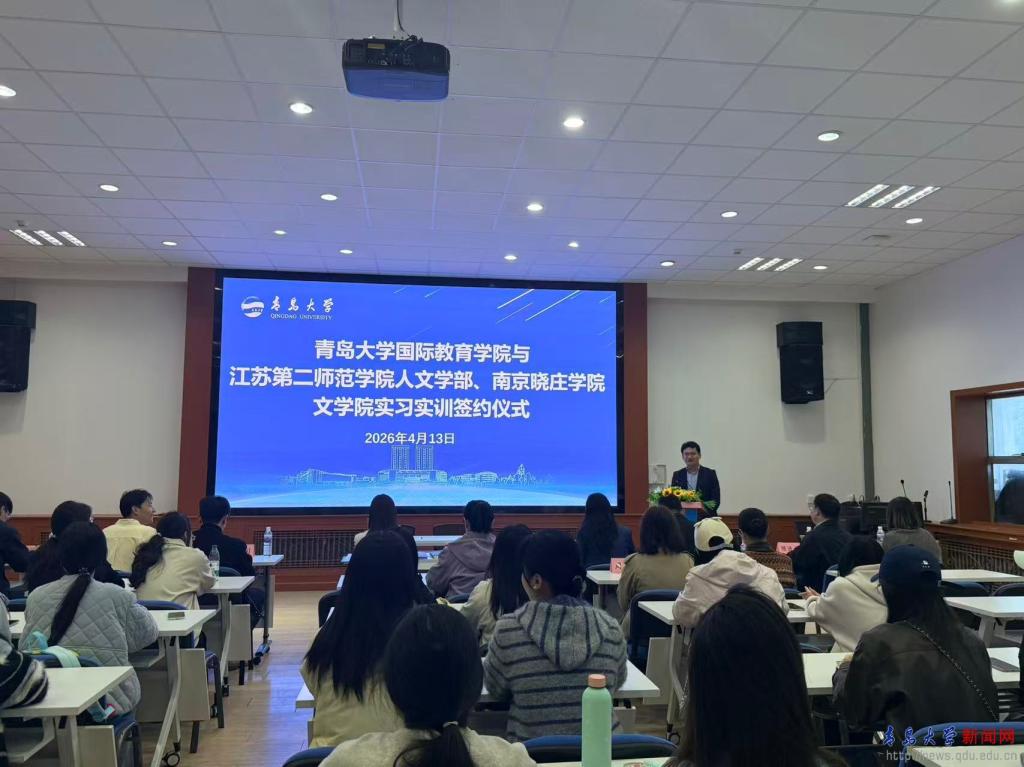 签约仪式上,周允旭对江苏两所高校师生的到访表示热烈欢迎,对两校在国际中文教育领域的办学成效给予肯定。纪皓瑛详细介绍了学院在来华留学教育管理、国际中文教育本硕培养、实践教学平台打造等方面的成果与创新举措。刘莹介绍了江苏第二师范学院人文部的办学特色、专业发展定位与人才培养需求,对青岛大学国际教育学院的办学实力和育人成效给予高度评价。