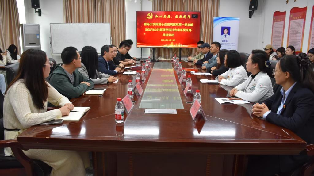 党建引领聚合力,跨界融合促发展。4月16日下午,政治与公共管理学院社会学系党支部与附属心血管病医院第一党支部在金家岭校区二号实验楼214会议室举行支部共建活动,以实际行动服务“健康中国”建设,推动学科发展与医疗实践深度融合。学院党委书记尹文博、社会学系党支部书记石腾飞、院长助理李海荣,附属心血管病医院纪委书记韩淑春、第一党支部书记郭琳琳及双方师生代表40余人参加。活动由学院党委副书记徐伟主持。