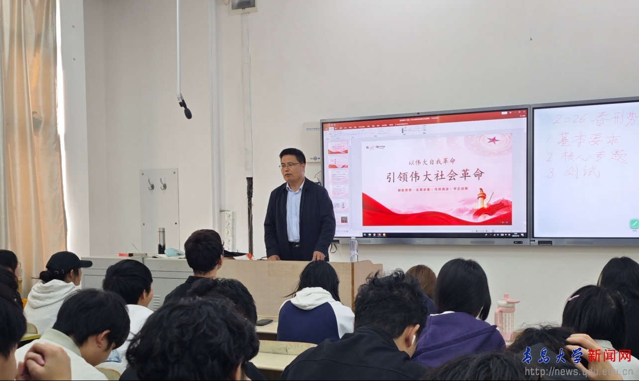 新闻网讯 4月18日上午,校党委常委、纪委书记、省监委驻青岛大学监察专员徐大连在浮山校区东12教209教室,围绕“以伟大自我革命引领伟大社会革命”这一主题,为材料科学与工程学院2024级本科学生讲授形势与政策课。徐大连紧密结合党的百年奋斗历程与新时代使命任务,围绕党的自我革命理论与实践与同学们展开深入交流。