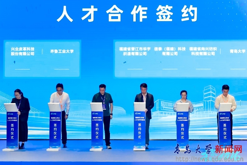 在校企合作签约环节,王宇政作为代表,与福建省向兴纺织科技有限公司、信泰(福建)科技有限公司、福建省晋江市华宇织造有限公司正式签署校企合作协议。