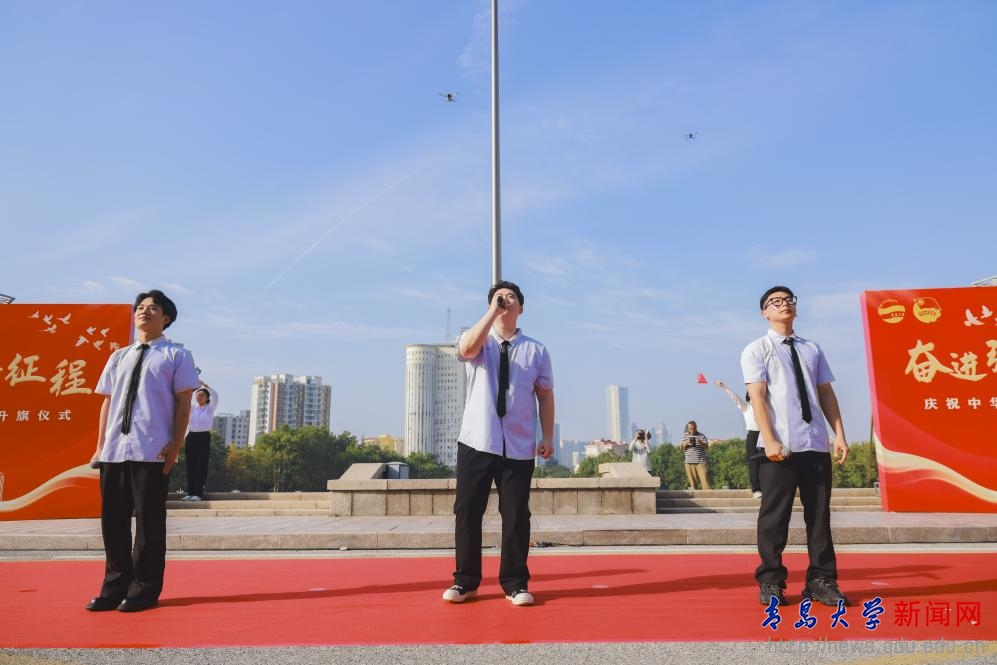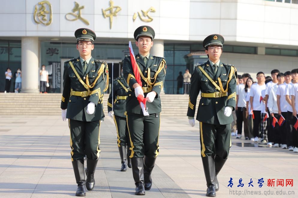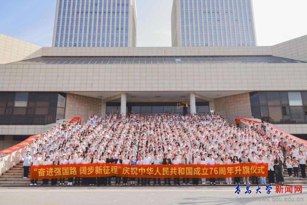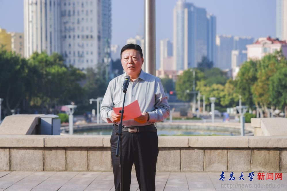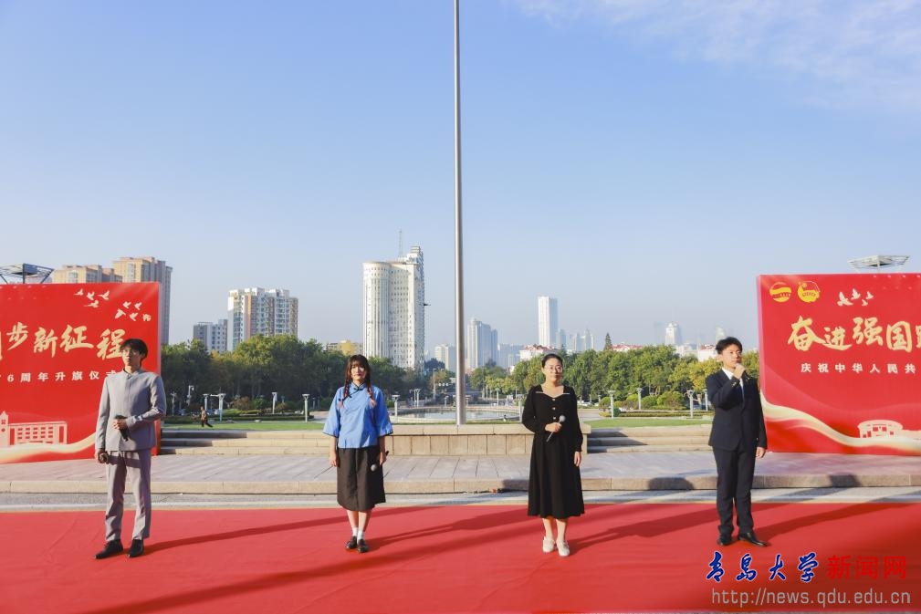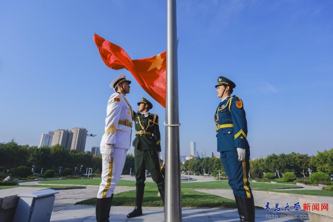 新闻网讯 10月1日上午,我校在浮山校区和金家岭校区同时举行“奋进强国路 阔步新征程”庆祝中华人民共和国成立76周年升国旗仪式。校党委常委、副校长陈涛出席升旗仪式并讲话,校党委常委、组织部长张守珩出席升旗仪式。校团委书记李鹏主持仪式。