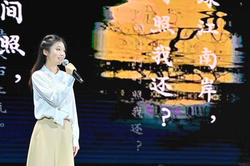 思政宣讲环节,青岛大学辅导员李明栋、朴博文、王嘉伟、孙蕾,本科生阿布都拉·木塔力甫、研究生张晓涵分别以《中国人的“大心脏”》《冰山上的守护者》《明月照征程》《歌声里的中国》《回家》《无名》为主题,向代表们呈现了充满信仰之力的强国青年说“大思政课”。