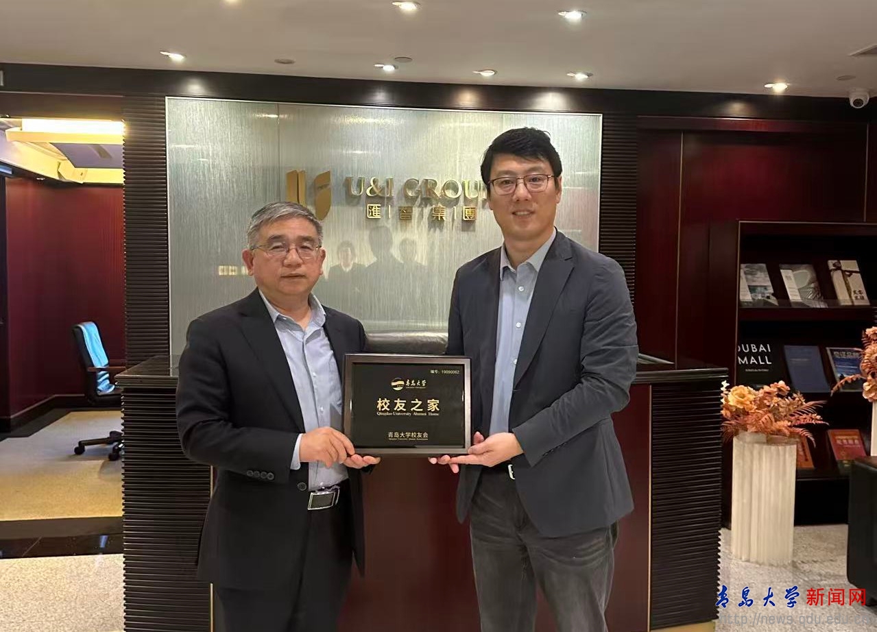 在走访校友企业时,汇智集团总裁、青岛大学港澳校友会常务副会长兼秘书长巩恩光与代表团围绕校企协同育人、高端人才引育、创新创业合作等方向交流探讨,为后续校企合作模式创新凝聚共识。会上,胡金焱代表青岛大学为汇智集团颁发了“校友之家”牌匾。