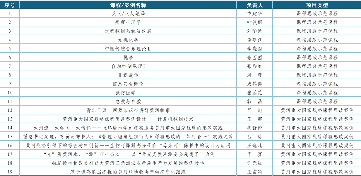 青岛大学2025年省级课程思政示范课程(普通本科教育)、省本科高校黄河重大国家战略课程思政优秀案例名单