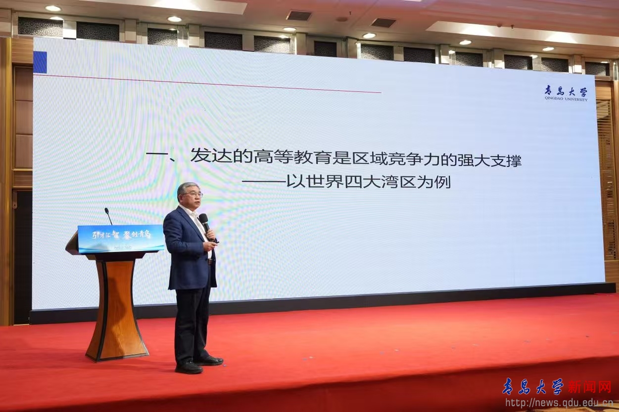 胡金焱立足青岛城市发展定位,博采全球湾区建设的成功经验,广纳国内先进城市的实践案例,通过横向对标、纵向剖析,清晰梳理出高校与校友协同赋能城市发展的内在逻辑与实践路径。胡金焱指出,经济发展与高等教育是“双向赋能、深度共生”的支撑关系,高等教育是经济发展的核心引擎,经济发展是高等教育发展的重要土壤。经济发展与高等教育需要双向共生,进而实现人才链与产业链对接、创新链与产业链协同、资金链与创新链互补、文化链与生态链契合的“四链融合”。