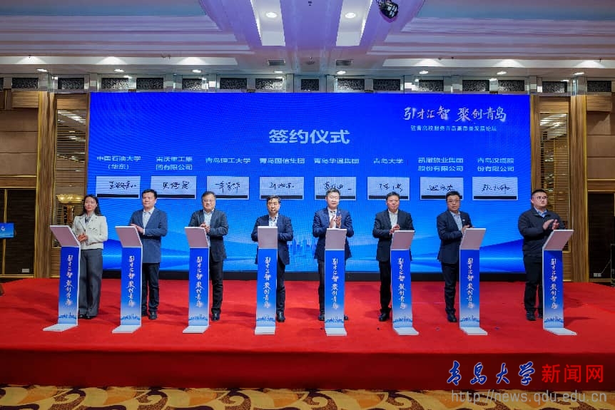 会上,中国海洋大学党委书记李明,山东大学党委副书记陈宏伟代表驻青高校致辞,山东大学校友会副会长、青岛校友会会长肖黎代表高校校友发言。