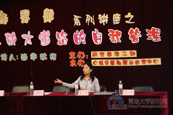 2008年5月7日晚上,“迎奥运我奉献我快乐”主题活动之一——青岛大学第六届心理健康节在图书馆报告厅拉开帷幕,山东省大学生心理健康教育专业委员会主任委员张华,校党委常委、副校长张铁柱出席开幕式,张铁柱发表讲话,张华为我校师生做了精彩的演讲。有关学院领导、辅导员及学生代表300余人参加了开幕式。 张铁柱指出,加强大学生心理健康教育是培养高素质人才的重要环节,是加强和改进大学生思想教育工作的重要任务。我校校党委、校行政多年来一直非常重视心理健康教育工作,《关于进一步加强辅导员队伍建设的意见》等一系列措施的出台为心理健康教育的普及与发展提供了政策和环境保障。张铁柱肯定了心理健康教育所取得的成绩,指出这一系列成绩的取得,是心理健康教育与研究中心、学生工作者以及学校其他部门共同努力的结果。本届心理健康节的主题是“阳光心情同行奥运”,在本届心理健康节中,我们要采取多种形式,开展一系列活动,同时选拔和培训“阳光使者”,构筑我校的大学生心理自助体系。他要求各学院一定要以心理健康节为契机,根据自身实际,结合专业特点,组织开展有特色的活动,以丰富心理健康节的内容。学生处、心理健康教育与研究中心要与各学院做好协调,及时给予各学院必要的指导、服务和督查。 张华为全体师生作了《大学生成才道路的自我管理》的精彩报告,阐述了二十一世纪中国需要什么样的人才,从目标、时间、情感、行为管理四个方面论述了大学生成才道路的自我管理,以及提升综合素质修养需要关注的几个问题,为大学生的生涯规划和成才道路提供了指导。