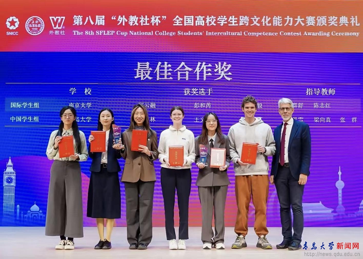 新闻网讯 12月11日至12月14日,第八届“外教社杯”全国高校学生跨文化能力大赛全国总决赛于上海外国语大学举行。由我校外语学院李一林、王文楚和青岛医学院祝潇菡组成的青岛大学团队获得全国总决赛中国学生组一等奖、最佳合作奖。公共外语教育学院秦丹雪、梁向真和外语学院张群获得全国总决赛指导教师一等奖。
