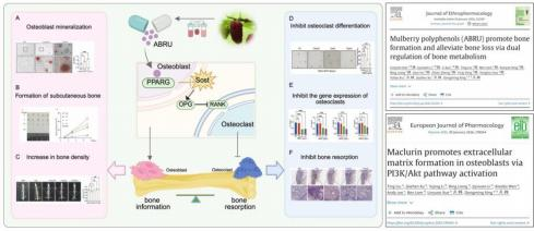 新闻网讯 近日,我校分子医学创新中心邢东明教授团队研究发现,乌桑中含有促进骨骼生长的有效成分,具有“促进成骨、抑制破骨”的双向调节作用。这一研究发现首次对《本草纲目》《黄帝内经》等中医药经典关于桑葚“利五脏关节”“入肾经,补骨生髓”的记载提供了现代科学依据。相关成果近日发表于国际知名学术期刊《民族药理学杂志》《欧洲药理学杂志》。