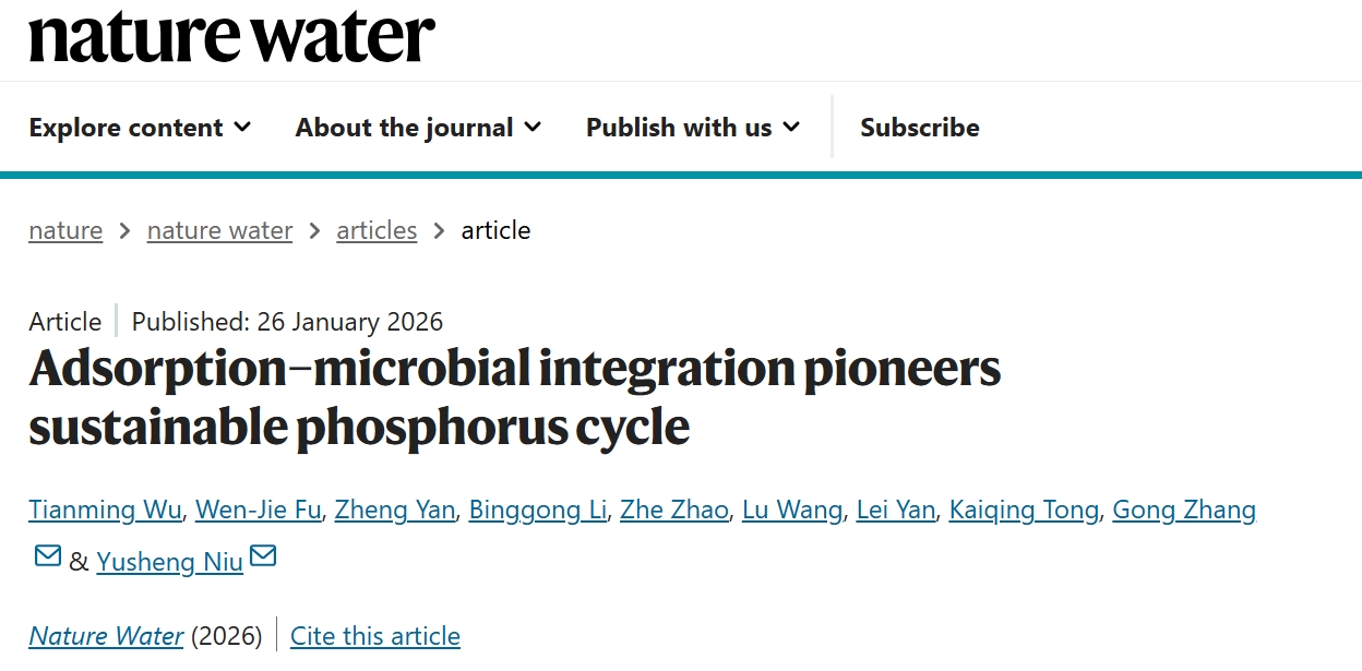 新闻网讯 近日,我校生命科学学院牛玉生教授团队在Nature Water发表题目为“Adsorption-Microbial Integration Pioneers Sustainable Phosphorus Cycle”的研究成果,该成果揭示了微生物在环境生态修复领域的重要作用。青岛大学博士研究生吴天明为论文的第一作者,牛玉生教授为通讯作者,清华大学张弓研究员为共同通讯作者,青岛大学为第一单位和通讯单位。