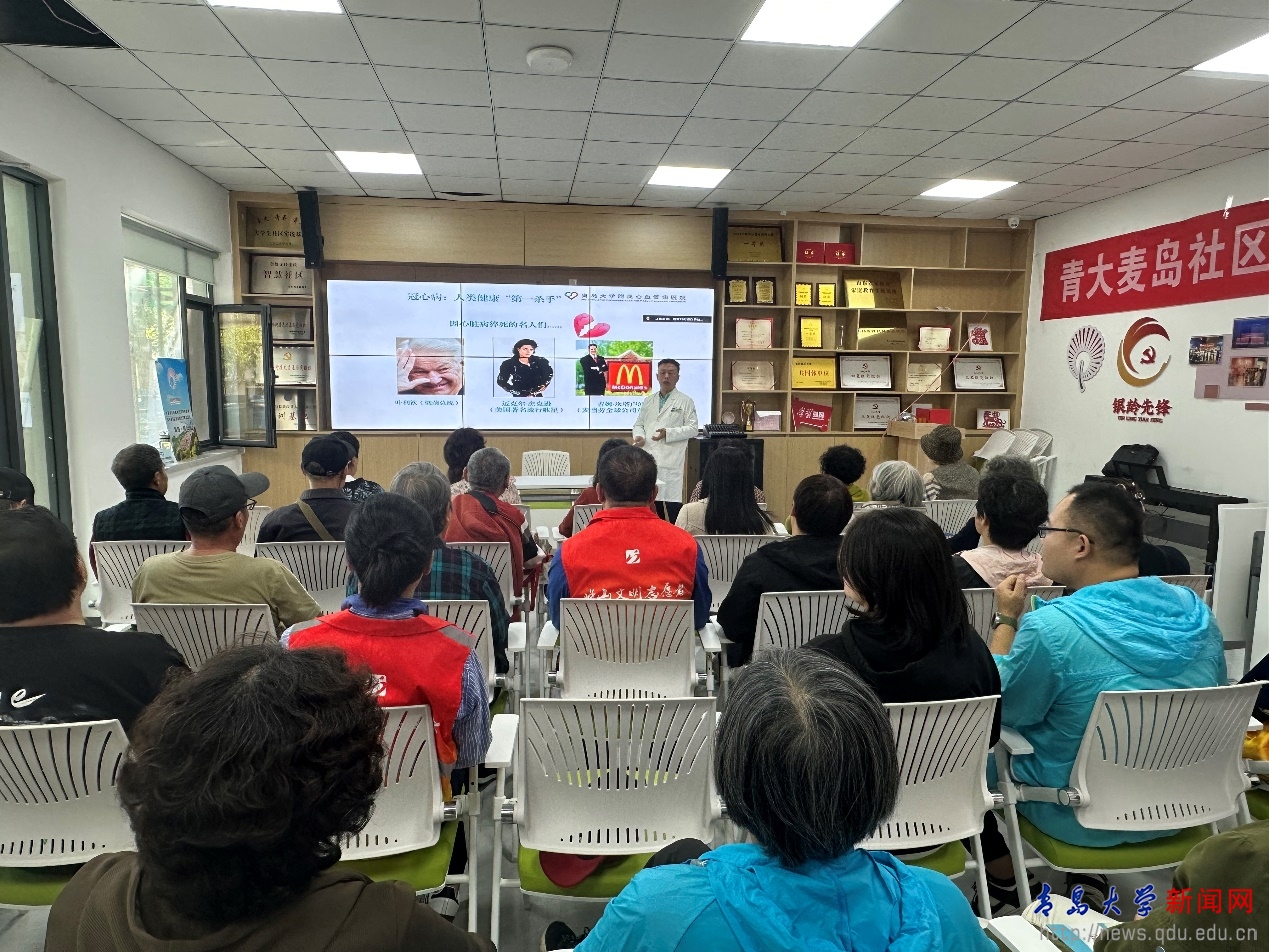 新闻网讯 10月26日,我校离退休工作处联合麦岛社区、青岛大学附属心血管病医院三方共建健康大讲堂和义诊活动在青大麦岛社区102会议室举行,开启秋季学期系列健康守护行动的序幕。活动特邀青大附属心血管病医院心内二科主任林培林教授主讲,学校40余位离退休老同志参加活动。