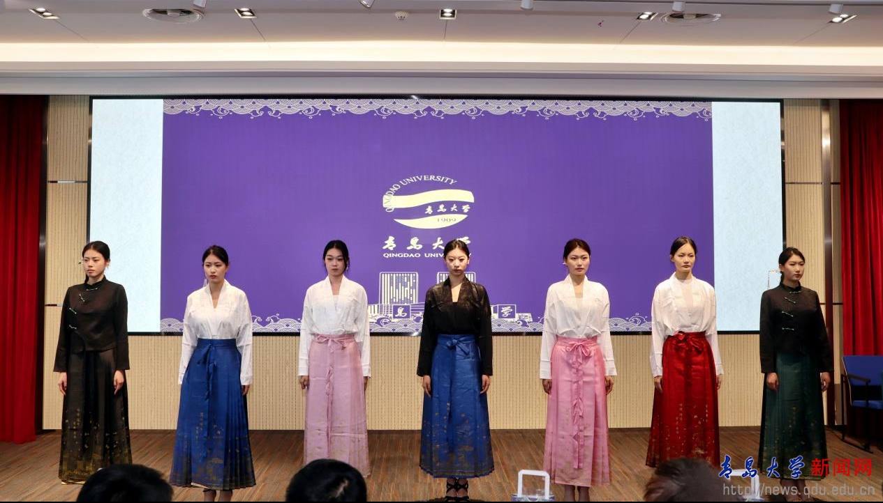 现场还发布了青岛大学专属定制汉服,曹县人民政府向纺织服装学院、历史学院、文学与新闻传播学院捐赠2025年新款汉服50套,支持师生开展文化研究与实践。合作发展处处长王海荣向企业颁发捐赠证书。同时,“一县一站一中心”“大学生汉服文化推广研习基地”“传统服饰研发中心”揭牌成立,标志着校地合作进入常态化、系统化新阶段。