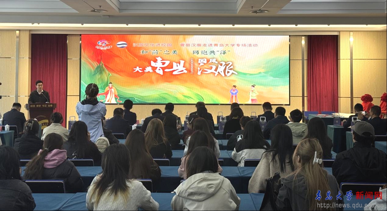 新闻网讯 10月28日上午,“和‘菏’之美·同袍共‘泽’——汉服文化进校园(青岛大学专场)”活动在会议中心举行。活动由校团委和菏泽团市委、曹县团县委共同发起,旨在以汉服为纽带深化校地合作,推动中华优秀传统文化的传承与传播。副校长李荣贵出席活动并致辞,菏泽市及曹县相关领导、学校师生代表、专家学者及企业代表参加活动。