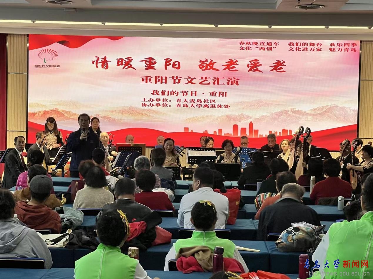 新闻网讯 10月28日下午,我校离退休工作处与青大麦岛社区在青岛大学大会议中心404室联合举办“情暖重阳・敬老爱老”文艺展演。近170余人青大离退休老同志、社区老人及工作人员参加。