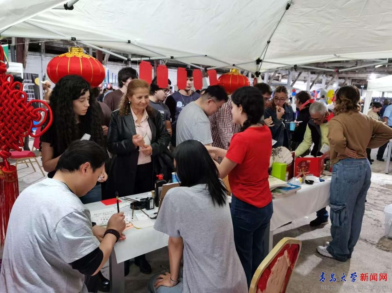 本次多国文化节活动由乌拉圭科技大学主办,设置了中国、美国、巴西、哥伦比亚等不同国家的文化展位。孔院准备了各类文化书籍、围棋、象棋、毛笔、传统挂饰,将中国文化摊位装饰的格外美丽,吸引了众多学生前来驻足体验,近距离接触中国文化。
