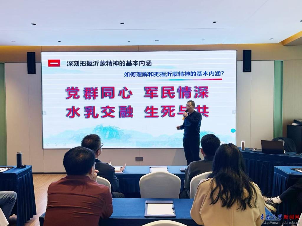 庄纪旭教授以“大力弘扬沂蒙精神”为题作专题讲座,深入阐释了“党群同心、军民情深、水乳交融、生死与共”的沂蒙精神内涵。他结合“沂蒙红嫂”等生动事迹,引导各位工会干部从红色基因中汲取精神养分,强化作为教职工“娘家人”的初心使命与责任担当。