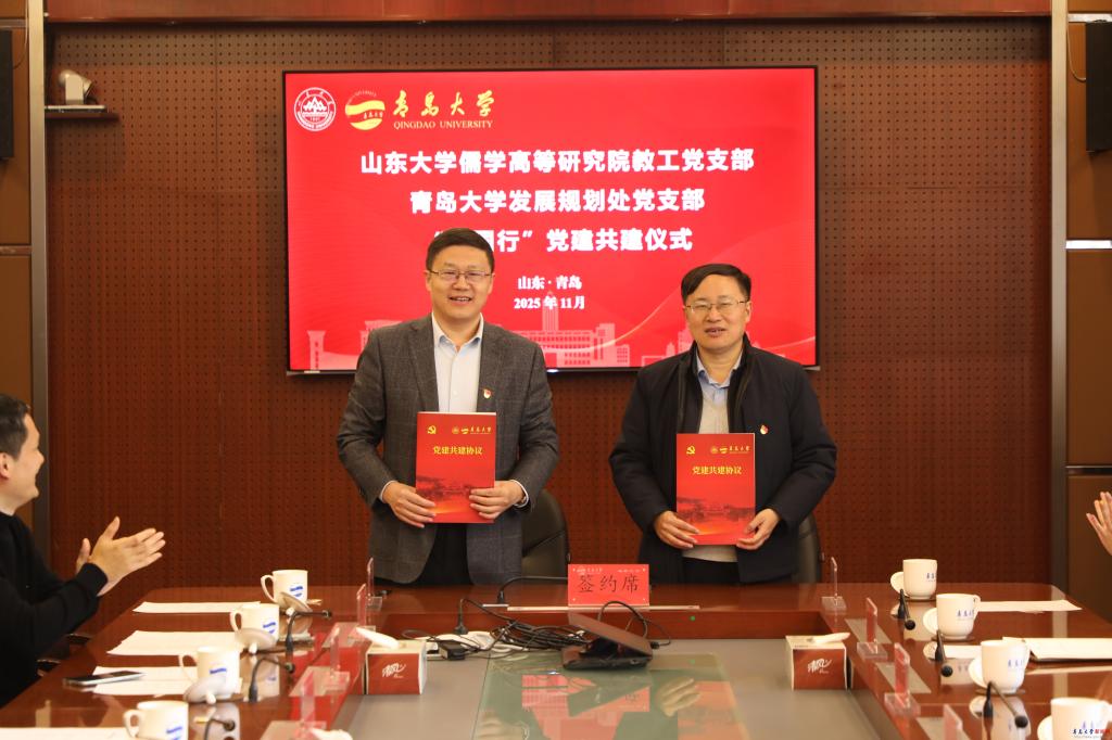 新闻网讯 为深入学习贯彻党的二十届四中全会精神,推动党的理论学习走深走实,提升基层党建工作质量,促进高校间党建与业务深度融合,11月28日上午,青岛大学发展规划处党支部与山东大学儒学高等研究院教工党支部联合开展“强国行”党建联建活动。