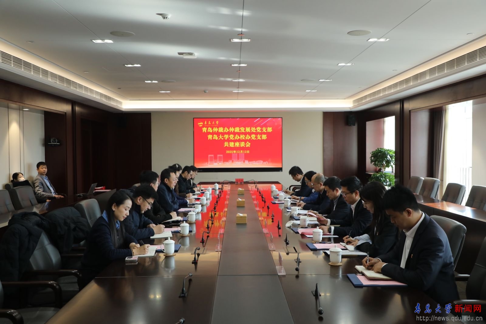 新闻网讯 为深入推进基层党建与业务工作深度融合,积极探索校地党支部共联共建新模式,12月12日上午,我校党办校办党支部与青岛仲裁办仲裁发展处党支部联合开展支部共建活动。青岛仲裁办党组书记、主任王振东,我校党委常委、副校长刘恩贤出席活动。
