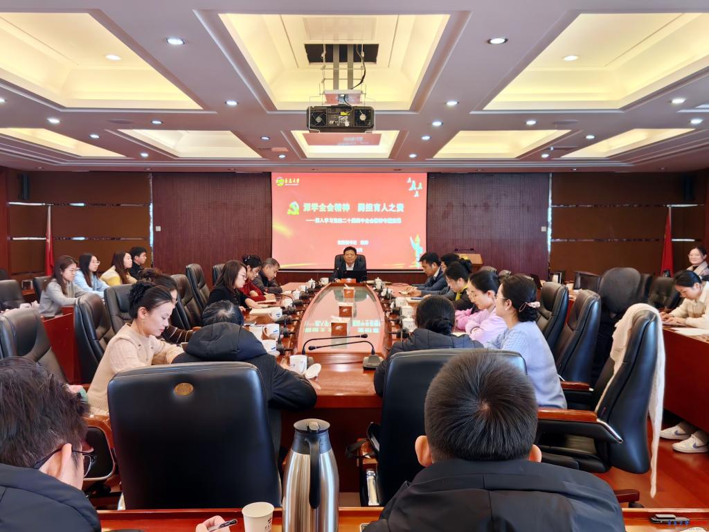 新闻网讯 12月12日下午,青岛大学学习贯彻党的二十届四中全会精神宣讲团成员、校党委副书记陈涛在办公楼407会议室为学校部分师生代表宣讲党的二十届四中全会精神并讲授专题党课。