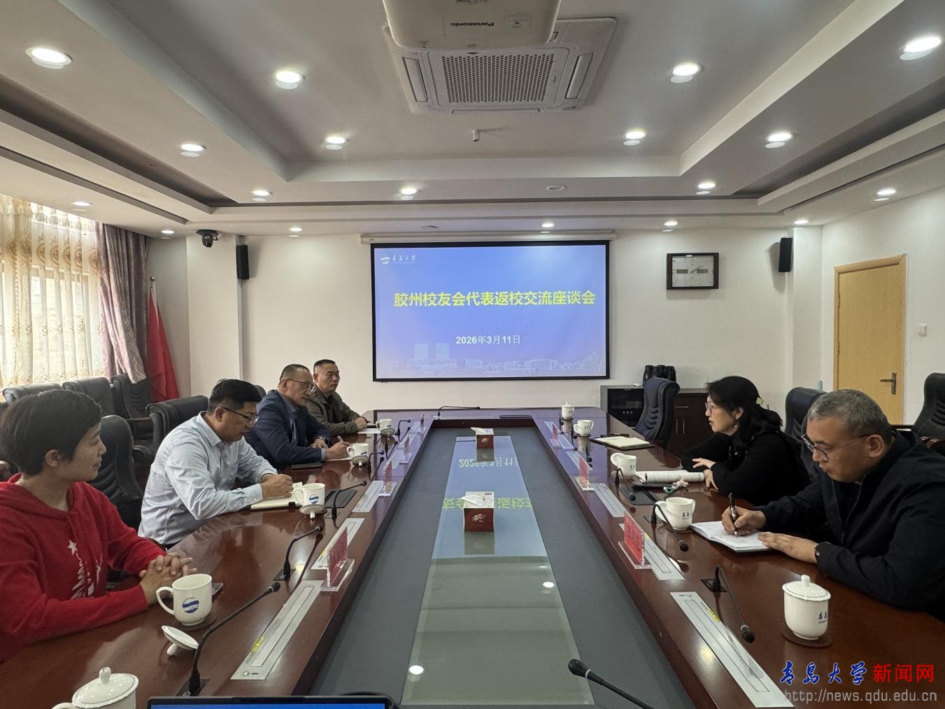 新闻网讯 3月11日,我校胶州校友会代表返校交流座谈会在办公楼306会议室举行。合作发展处处长王海荣、副处长张传亮,以及胶州校友会多位代表出席座谈,共话母校发展,共商校友会建设事宜。