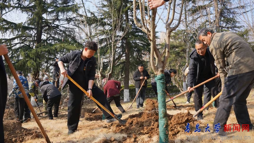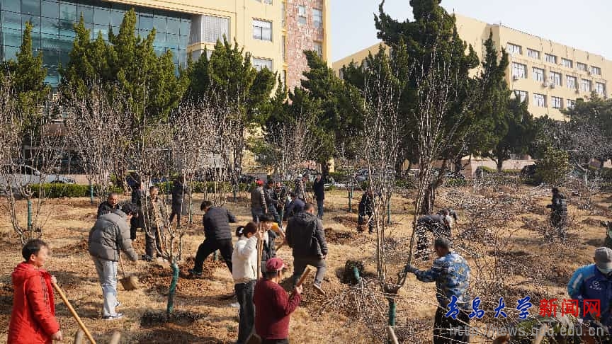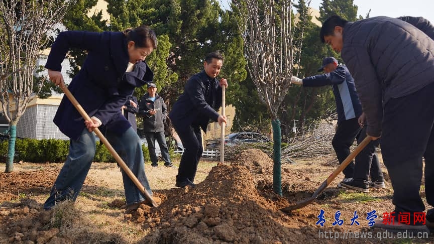 此次义务植树活动选址于浮山校区西院博新楼前空地,师生们分工协作、默契配合,集中栽植西府海棠近百棵。校领导与青大学子一同挥锹铲土、扶苗培土,大家热情高涨、干劲十足,欢声笑语中一派热火朝天的春日劳动景象,原本空旷的场地转瞬成林。新栽植的海棠与周边分布的海棠树共同组成了西院的海棠林,不失为又一处师生学习、休闲的好去处。